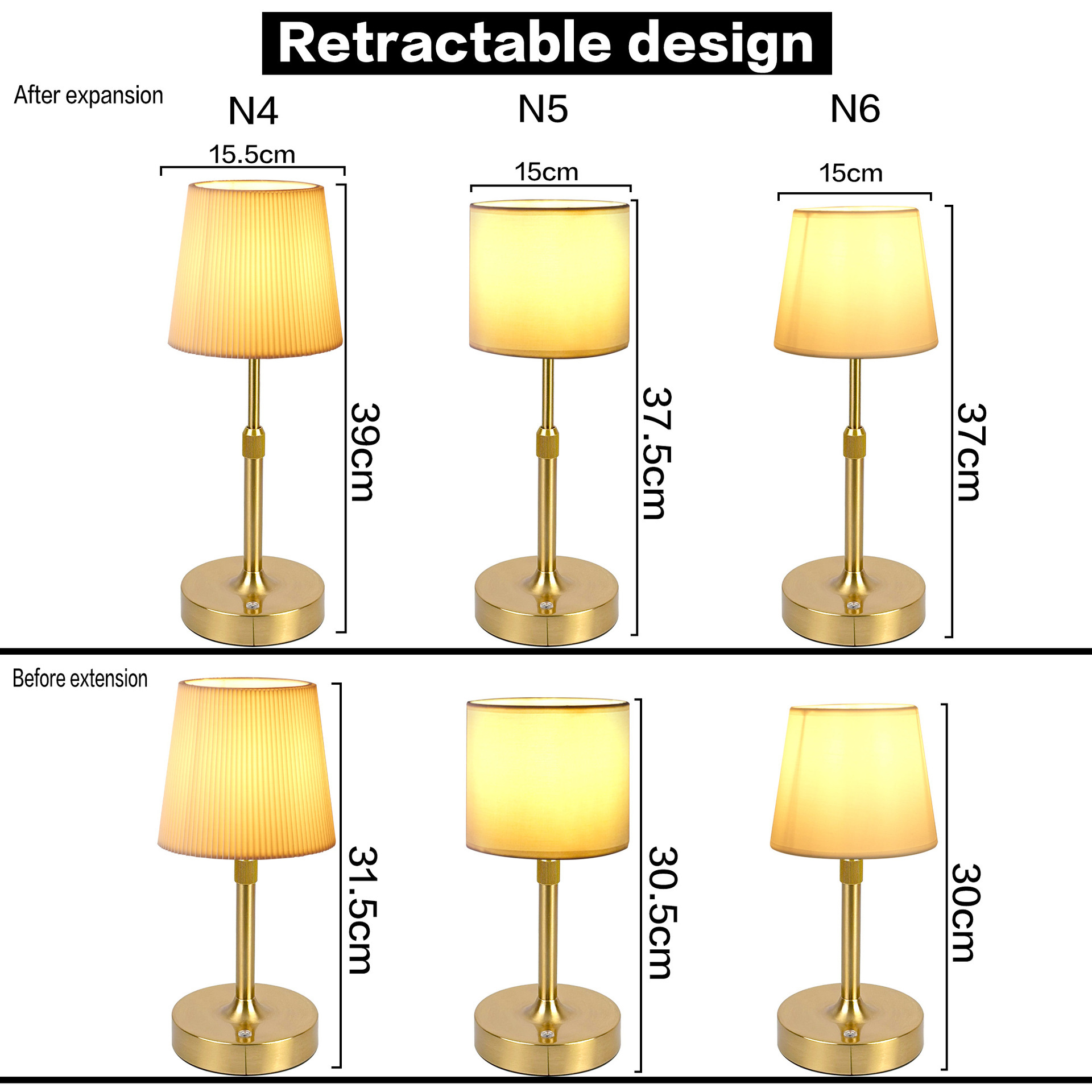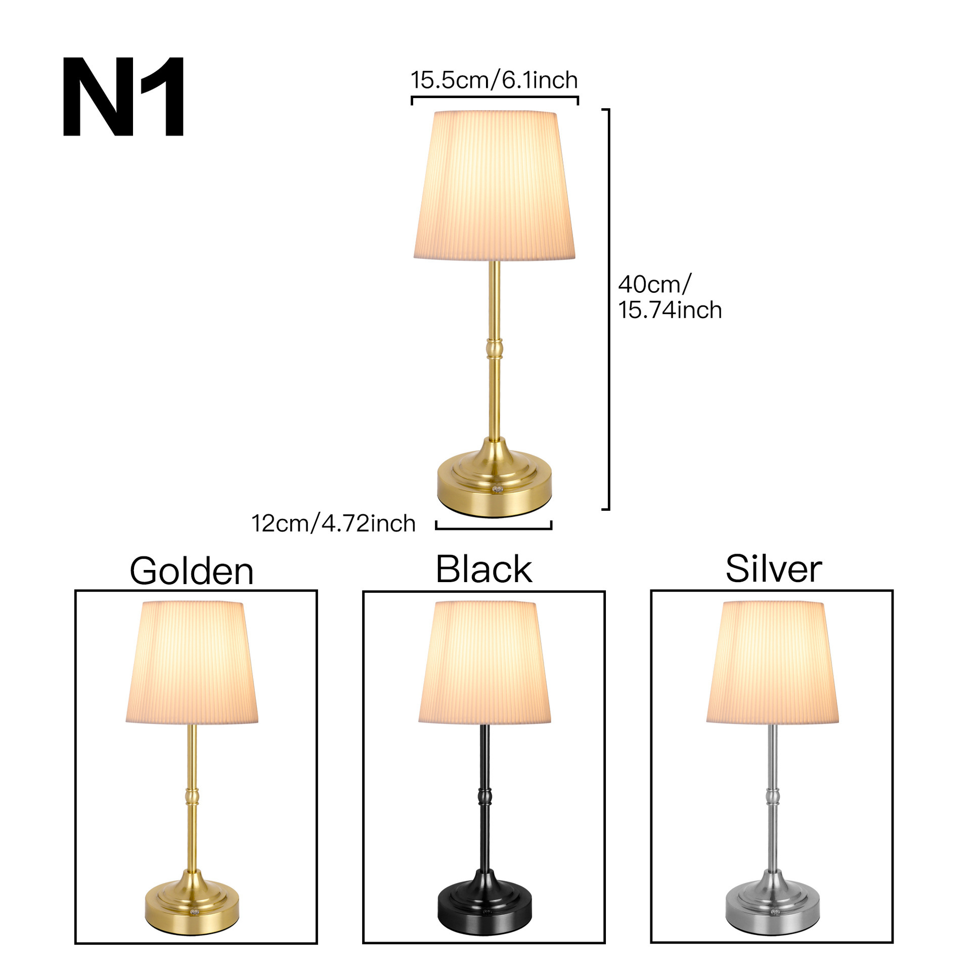 Colors: Gold, Silver, Black, White, Orange (warm light charging model)