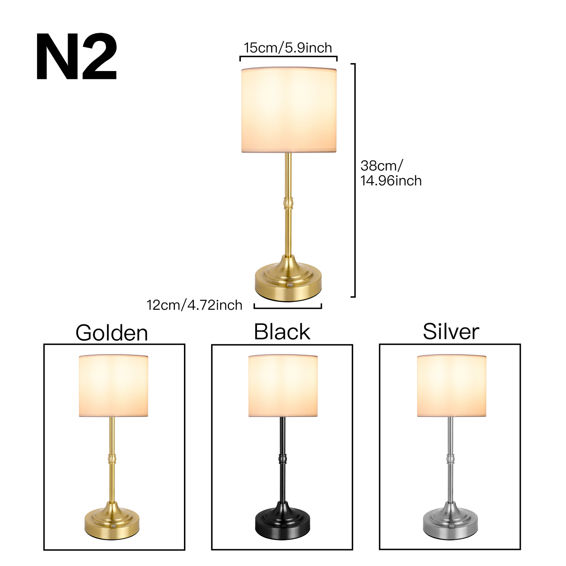 Material: Fabric shade, Metal base